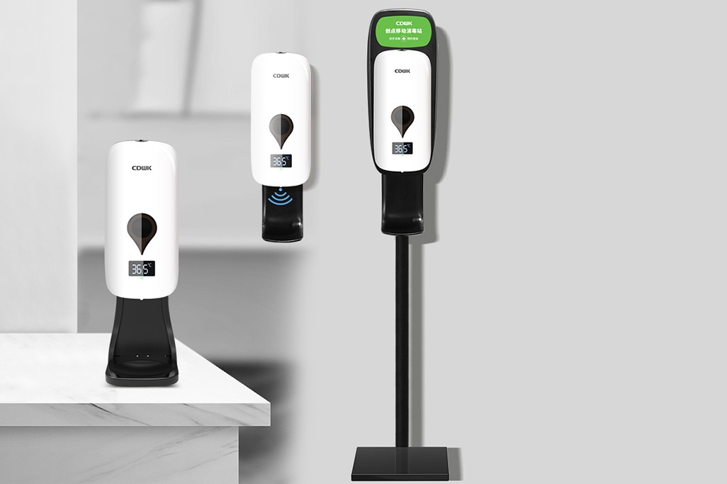 CDWK創點 感應測溫消毒機 CD-5168,自動體溫檢測與免洗消毒,紅外線感應免接觸使用,滴液/噴霧/泡沫三種泵頭可選,反應靈敏不漏液,1000ml大容量,支持12種語音播報功能,可壁掛可支架滿足不同場景需求。