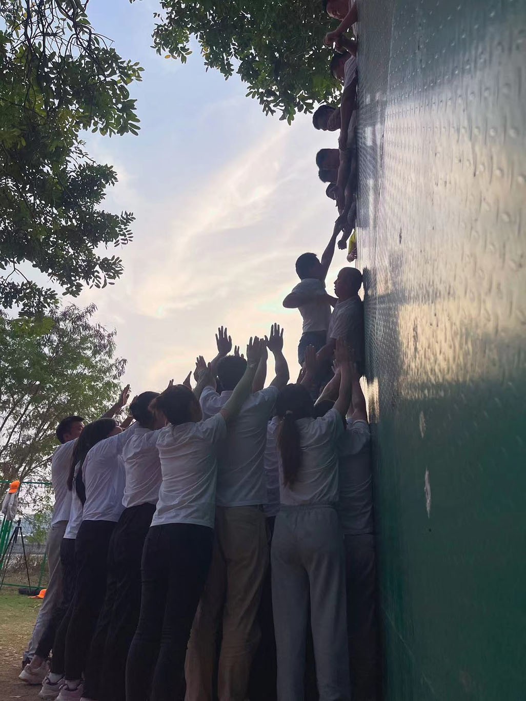 經過午間的休息和調整之后,大家在領隊的號召下繼續拓展活動,組員拼接塑料管片讓彈珠一路滾動直到落入前方指定紙杯中(珠行萬里),分組協作按照任務卡和圖形卡拼七巧板(戰國七雄),徒手翻越四米高墻(畢業墻),活動現場氣氛緊張,過程中大家雖屢屢受挫,卻空前團結,加油聲響亮,最終取得任務成功!