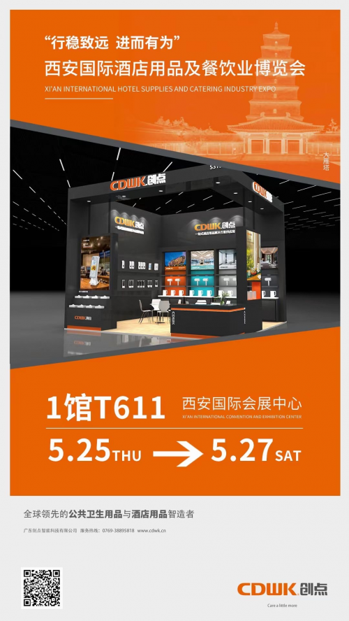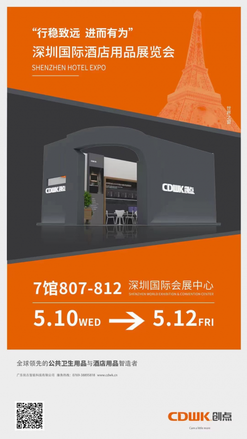 CDWK創點以健康、科技為產品核心,為全球用戶提供更便捷、更健康、更環保、更舒適的高品質生活。以上展會,CDWK創點將提供科技與智能,顏值與實用性相結合的酒店用品、公共衛生用品、智慧廁所、養護醫療系列等一站式解決方案與國內外行內經營者及采購商見面,現場體驗創點智造,共探前沿技術,我們與你不見不散!