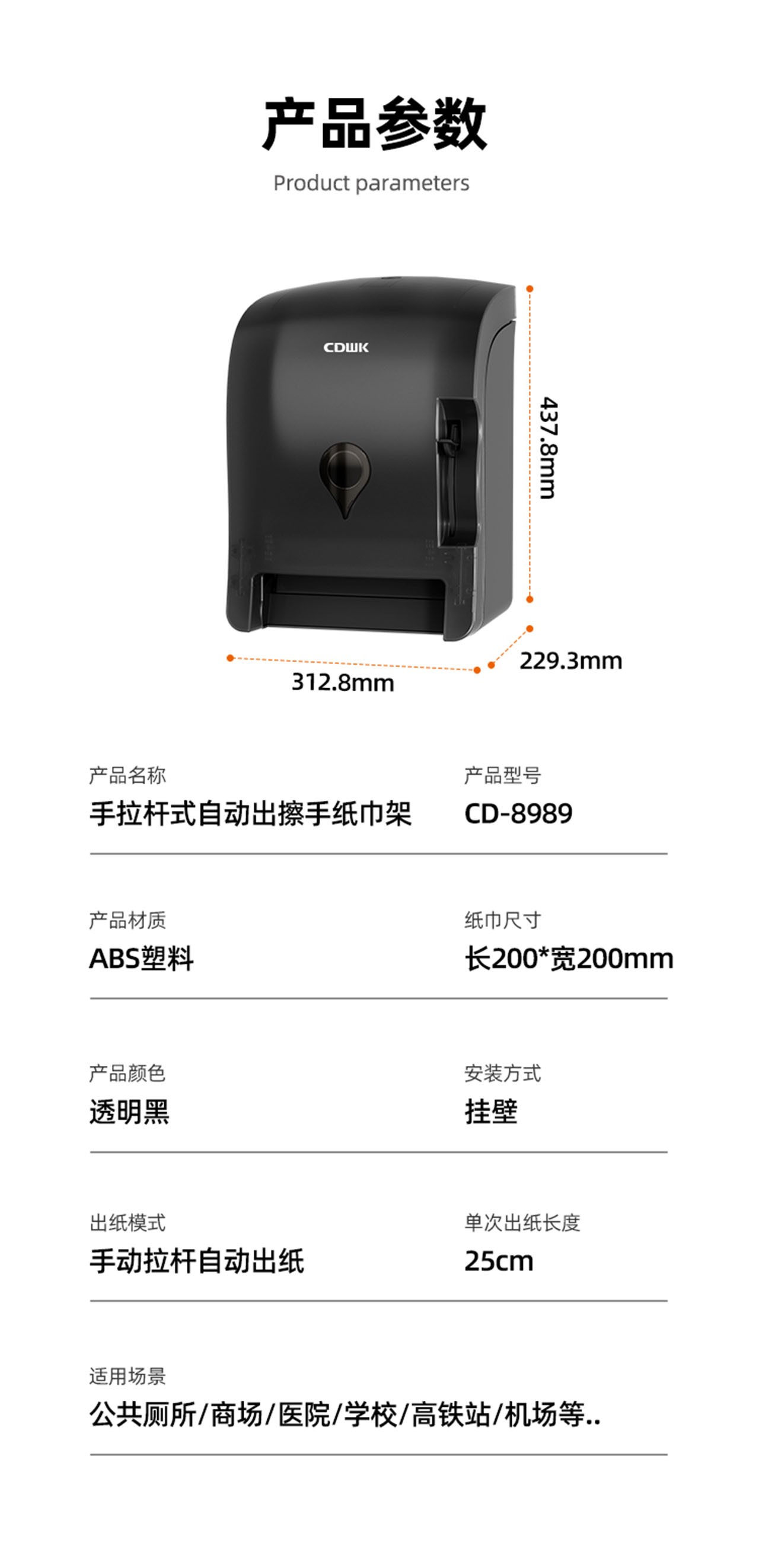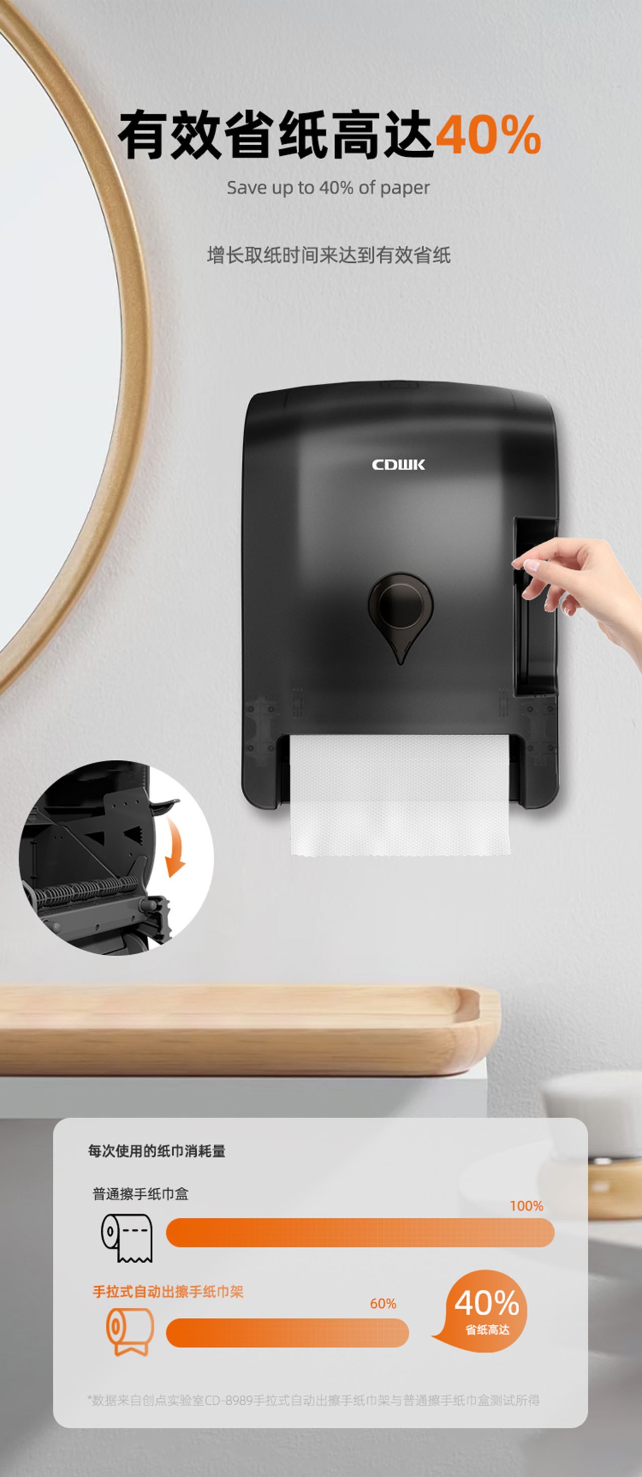 公共衛生 | CDWK創點拉桿式擦手紙分配器,為您節省40%紙巾消耗!