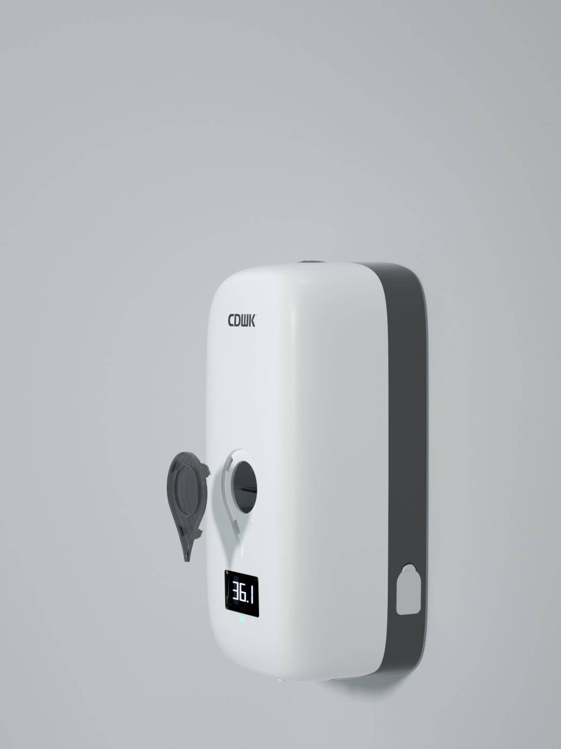 CDWK創點自動測溫皂液器在噴嘴下方設置了紅外線傳感器,當把手放置在噴嘴下方的感應區域,皂液器就可自動出液,無需接觸即可使用,干凈衛生。